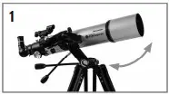 1. The StarSense Explorer DX mount has slip clutches in both axes. To make large movements with the telescope, simply hold a tripod leg with one hand and use the other hand on the telescope tube to push the telescope in the desired direction.