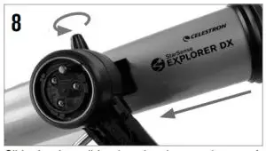 10. Insert the barrel of the 25 mm eyepiece into the diagonal and tighten the set screw.