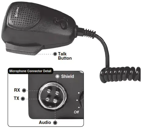 Allows for convenient removal of the Microphone plug when storage is required. The Microphone MUST be connected to the unit at all times, when in use, for proper operation.