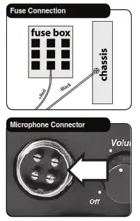 Allows for convenient removal of the Microphone plug when storage is required. The Microphone MUST be connected to the unit at all times, when in use, for proper operation.