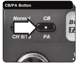 In the CB position, the PA function is disabled and the unit will transmit and receive on the selected channel.