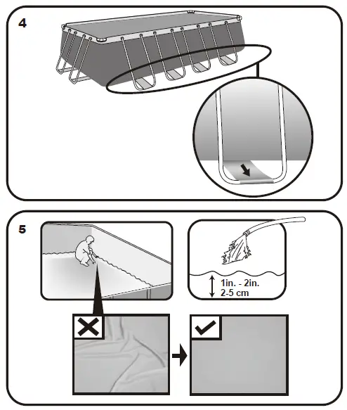- When filling the pool is completed, check that the water is not collecting on any side to ensure the pool is level.