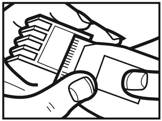 To remove comb attachments, place index finger and thumb as illustrated; then pull out and up.