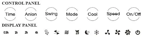 Please note: These are single use timers, and cannot be combined or automatically repeated. - ANION button: Press the ANION button to activate the ionizer. Press the button again to turn the ionizer off. When activated the ANION button will illuminate on the display.COOL button: Press the COOL button to turn on the Humidifying function, which cools the air. Press the button again to turn it off. When the COOL function is turned off, the Air Cooler will operate as a fan, and the water will not be used to cool the air.