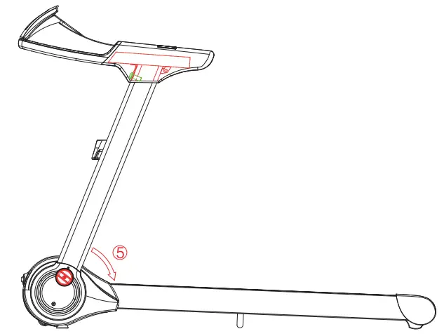 Step 5: After all the steps above, Please insert the power cable in socket, and open the power switch. Then the treadmill’s electric watch will light,