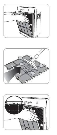 • Clean the Pre-filter with water regularly and dry it completely before use.