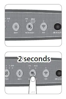 1.  When the filter reset indicator is not activated, press and hold the reset button for 2 seconds.