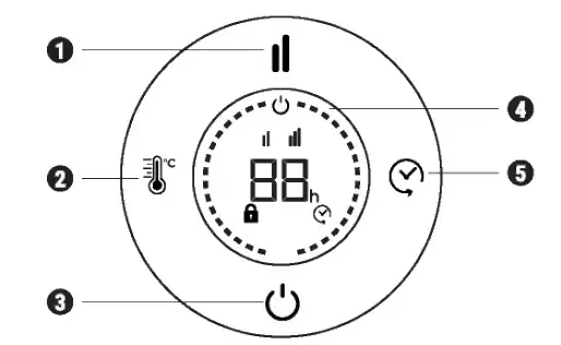 When the product is on, press ·power•. The upper part of the display shows the temperature. The heater is working at low-power heating conditions.