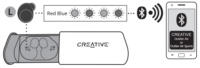 When the earbud begins flashing in red and blue to indicate Bluetooth Pairing mode, pair the earbuds to the desired device