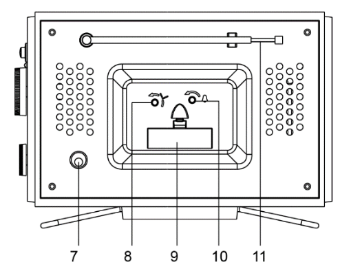 Sleep KnobClock DisplayFunction KnobLight/Snooze ButtonTuning KnobStandby/Volume KnobPower JackTime Setting KnobBattery CompartmentAlarm Setting KnobTelescopic Antenna