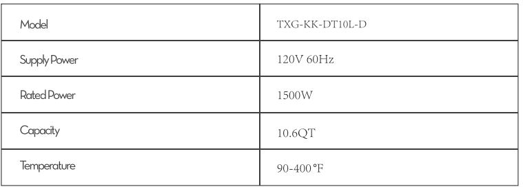 Crownful Air Fryer Oven TXG-KK-DT10L-D Manual