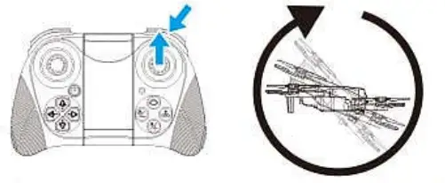 Press the 360° tumble button for a short time, then push the right joystick upward, and the aircraft will turn forward 360°correspondingly.