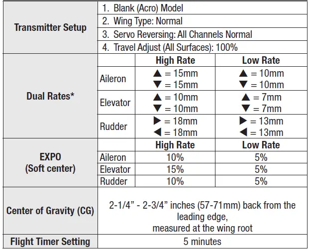 NOTICE: To ensure AS3X® technology functions properly, do not lower rate values below 50%. If lower rates are desired, manually adjust the position of the pushrods on the servo arm.