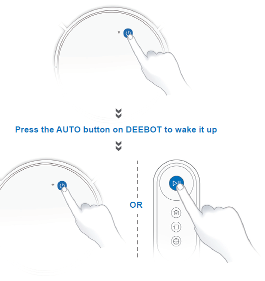 When DEEBOT completes the cleaning cycle or when battery power gets low, DEEBOT automatically returns to the Docking Station to recharge itself. DEEBOT can also be sent back to the Docking Station at any time by using ECOVACS App or by pressing the AUTO Button on the robot for 3 seconds.