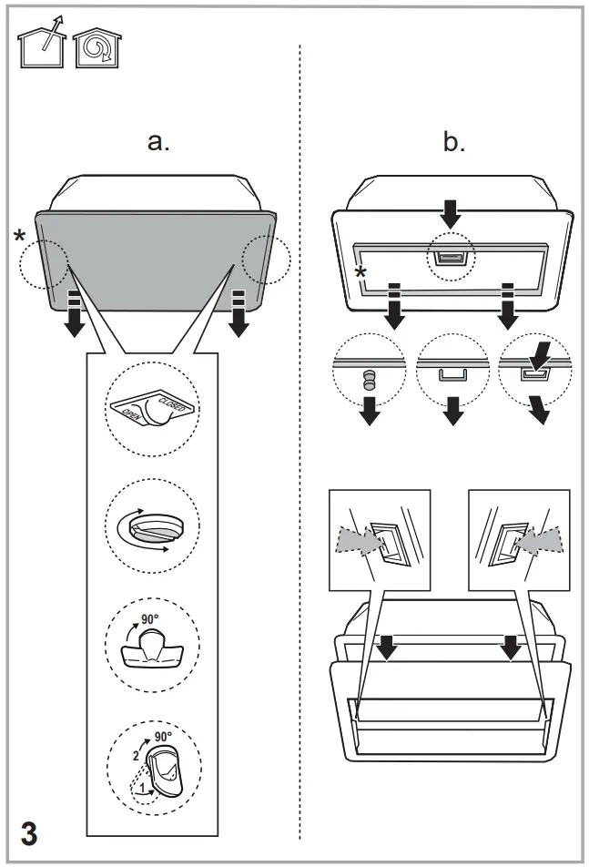The saturation of the charcoal filter occurs after more or less prolonged use, depending on the type of cooking and the regularity of cleaning of the grease filter.