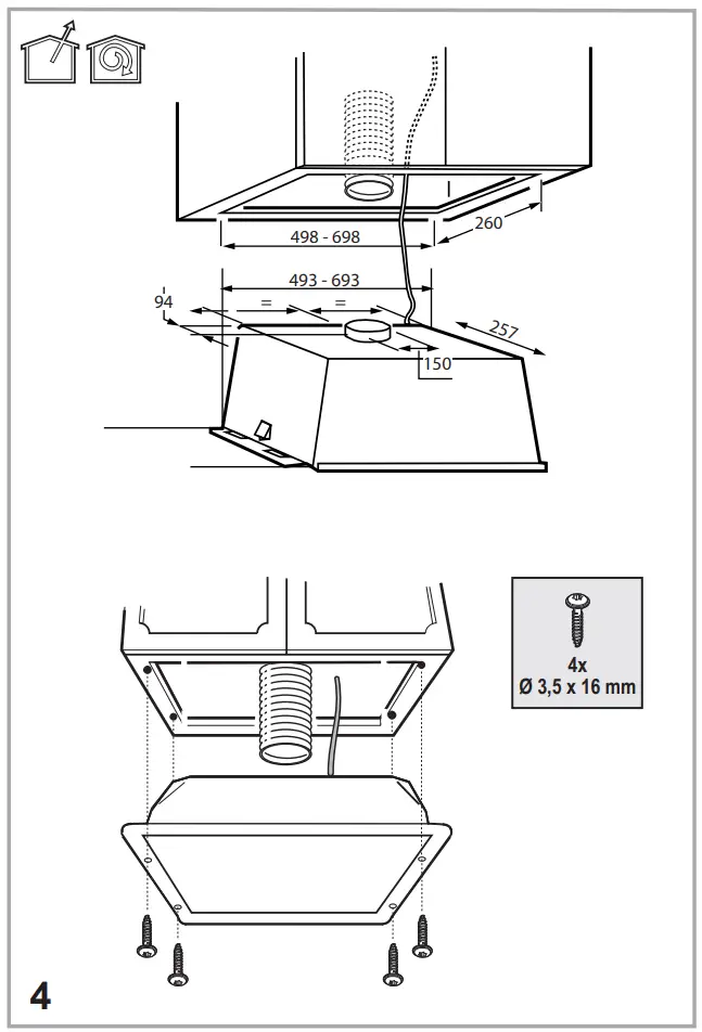 • This must be completed in accordance with the maintenance instructions provided. Failure to follow the instructions provided regarding the cleaning of the hood and filters will lead to the risk of fires.
