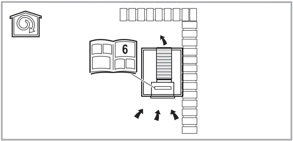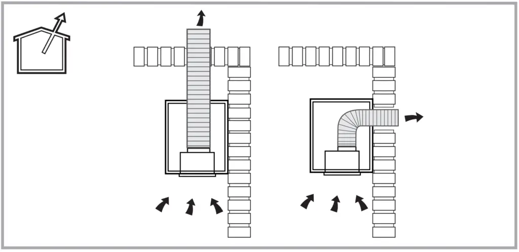 • The air must not be discharged into a flue that is used for exhausting fumes from appliance burning gas or other fuels.