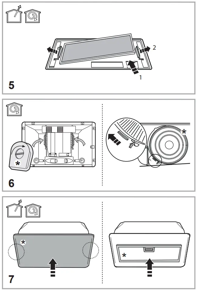 In order to reset the saturation indicator, switch on the hood then press and hold button 1for about 3 seconds.