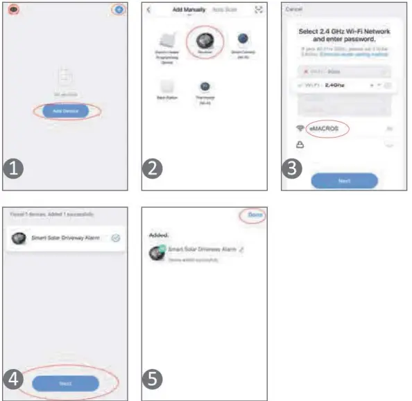 Manually connection: Select Smart Solar Drive Alarm (W1-FI), fill in the working WI-Fl and enter the password, click next, confirm that the indicator light flashes quickly, click next to wait for the connection, wait for the pop-up of Add successfully, then the network configuration is successful.