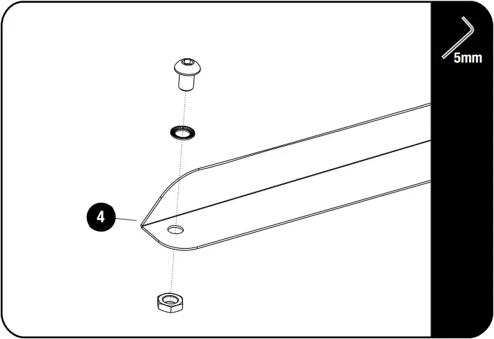 Loosely assemble the M8 x 12 Button Head Bolt, M8 Schnorr Washers and M8 Thin Nut both LH & RH Wind Deflectors (Item 4) as shown.
