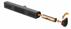 - Insert a AA battery into each end of the camera, with the positive pole facing outward.