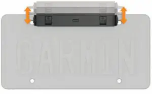 When the mount is installed on your vehicle, the Garmin logo on the camera clip must be right-side up. Out of the box, the mount is assembled for installing the camera at the bottom your license plate. When installing the camera at the top of your license.