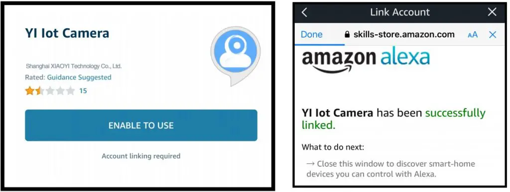 - Search for YI IoT -> ENABLE TO USE -> Enter the YI IoT account