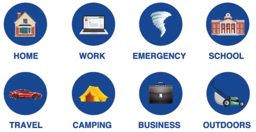 The HALO POWER STATION is compatible with AC and DC electronic devices, equipment, and appliances were portable, stationary, or emergency power is required.