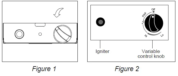 - Turn control knob clockwise to PILOT. (Normally, burner will make a slight popping sound when extinguished.) Burner will extinguish but PILOT will remain ON.