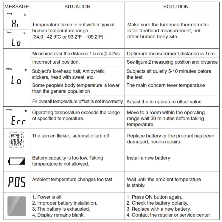 - When the ambient temperature of the thermometer changes too much, such as moving the thermometer from one place of lower temperature to another place of higher temperature, allow the thermometer to remain in a room for 30 minutes where the temperature is between 59°F – 95°F (15°C – 35°C).