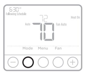 - Once at the desired setpoint temperature, no further action is needed. The new setpoint temperature will be held until the next scheduled time period begins. For more information on schedule time periods.