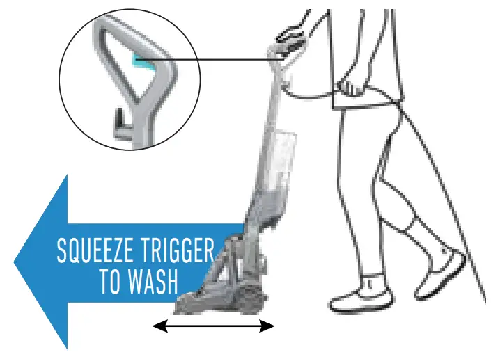 | Slowly push forward then backward while squeezing the trigger to apply water and cleaning solution. | Release trigger then slowly push forward then backward to remove water and dry the carpet. |