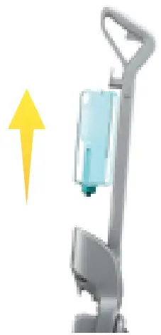 | Slide the Clean Water Tank back into the unit. | Plug the power cord into an electrical outlet. Step on the Handle Release Pedal to recline the unit into the cleaning position. |