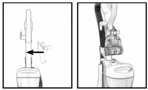 - Press the wand release button and pull the wand out of the vacuum. OR Press the hose tab to remove the hose