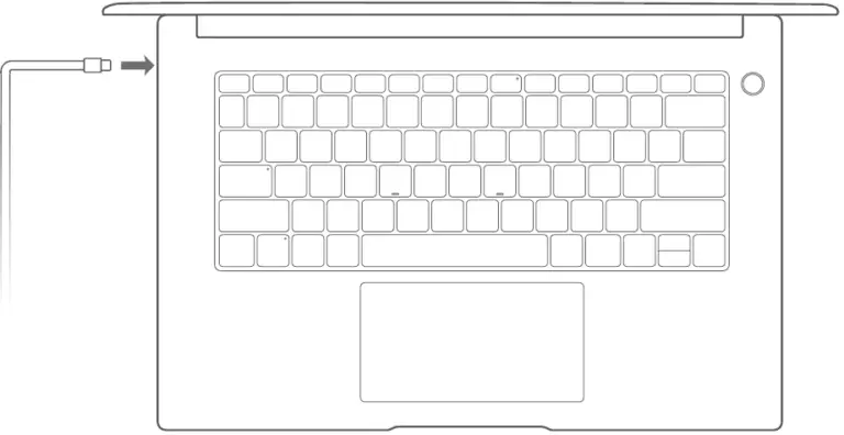 How do I charge my HUAWEI D-15 MateBook?Your computer has a built-in rechargeable battery, and you can charge it using the adapter and USB-C charging cable that came with it. The indicator blinks white during charging. You can charge your computer and transfer data with the USB-C port on the left.
