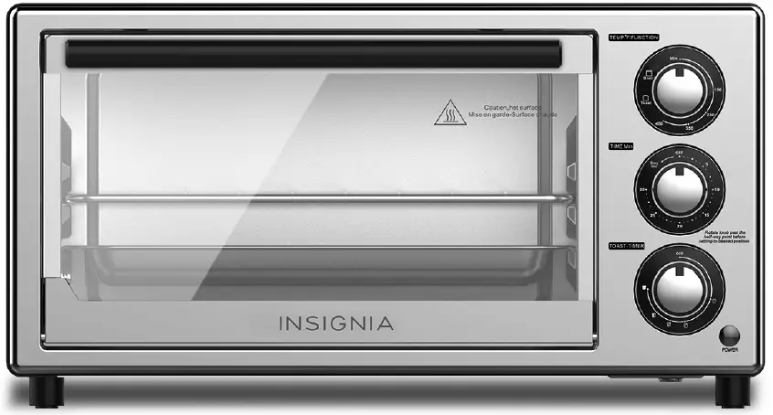 When the timer reaches “OFF,” a bell rings, and the toaster oven turns off.
