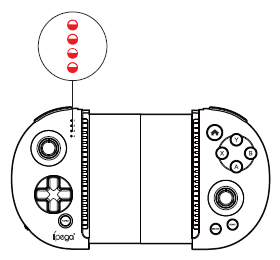 - When the gamepad :s not connected to any device while it S charging, 4 LED indicator lights will slowly blink. When the charging is completed, the lights will be off! When the gamepad is connected to other device via Bluetooth while it is charging, the current mode light will slowly blink. When the charging S completed, the light will be on.