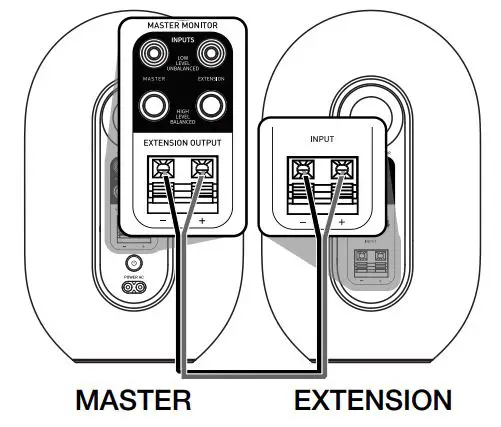 - EXTENSION INPUT — Connect this input to the MASTER MONITOR EXTENSION OUTPUT terminals using the included speaker wire. This input receives an amplified speaker-level signal from the MASTER MONITOR.