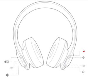 c. In wired mode, power on the headphone to switch it on. Power off the headphone to switch it off. Also could use the ANC button to switch it on and off.