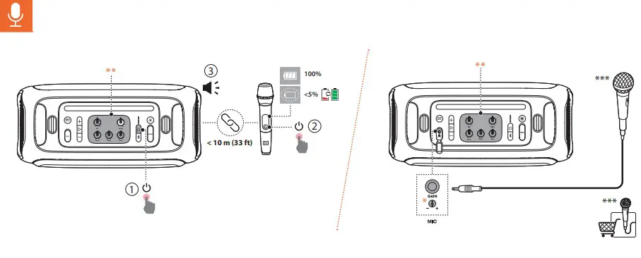 * Rotate to adjust the gain (for wired microphone only).