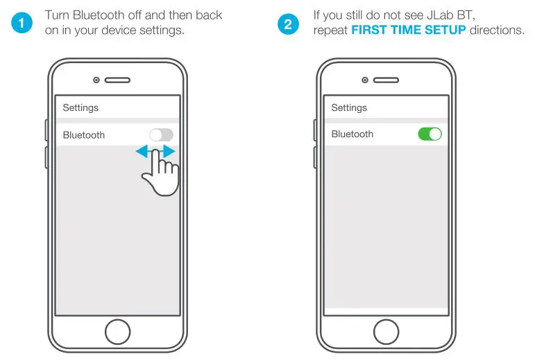 Once Jlab BT has initially paired to your device, the earbuds will auto-connect to your Bluetooth device when powered back ON. (see BUTTON FUNCTIONS instructions)