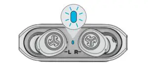 - Then pulsing blue light indicates earbuds are charging and turns off when fully charged.
