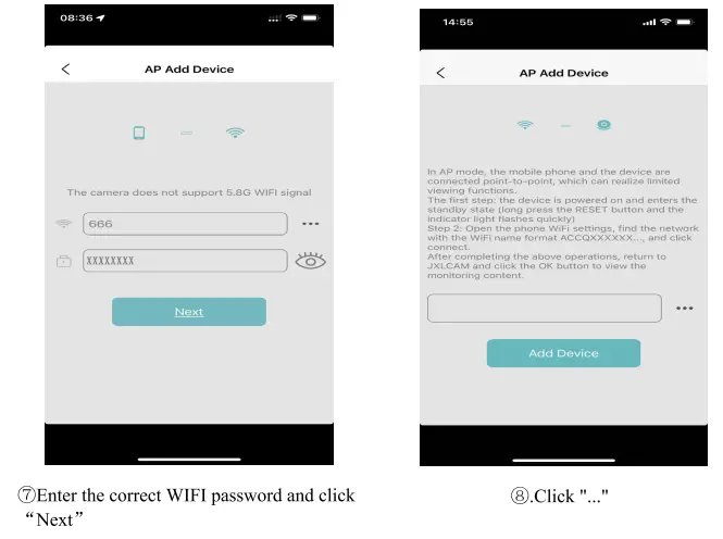 Note: when there is no WIFI in the environment, you can use AP mode to connect, which is valid for no more than 10m, which can achieve localized video viewing.