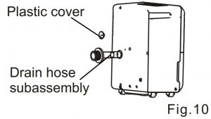 Remove the continuous drain hose and the drain hose subassembly from the unit. Install the plastic cover to the continuous drain hose outlet of the unit by using two screws.(See Fig.13)