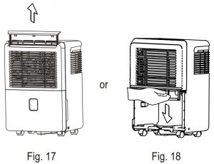 Remove the filter from the top of the unit (See Fig.17), or to remove the filter,remove Bucket then pull filter downwards (See Fig.18).