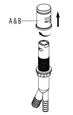 Insert the air gap body (E) through the sink deck hole, leaving approximately 2-1/4″ (57 mm) of the body showing above sink deck. (Back the nut (D) down if necessary).