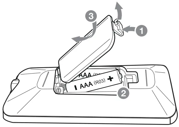 Remove the battery cover on the rear of the remote control, and insert the battery with + and - matched correctly.
