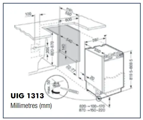 The appliance may protrude further, depending on the depth of the kitchen units and the use of wall spacer brackets.
