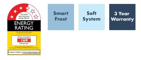 | Energy consumption (kWh/yr)star rating | 169kWh I 3.5 |