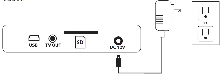 - Connect the power adapter into the DC 12V port at the back of the outlet.